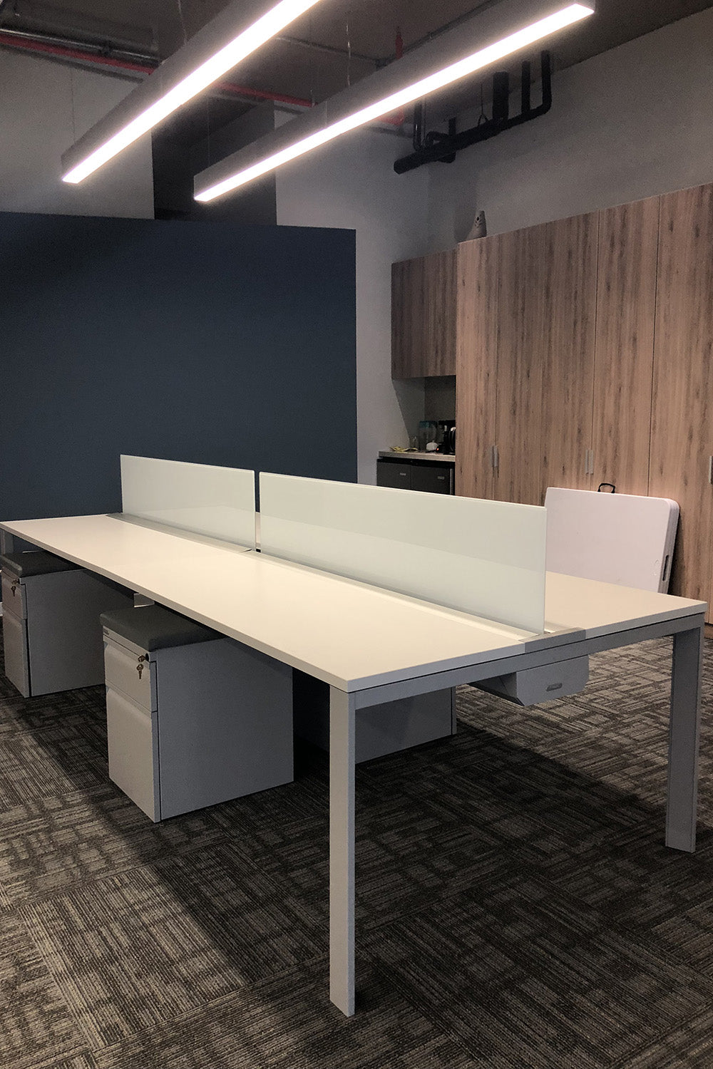 En coordinación constante con nuestro cliente, se trabajó en la implementación de sus oficinas administrativas con mobiliario de líneas y colores sobrios tanto para los Pools Operativos tipo Bench, Puesto Administrativo, Gerencia General y Sala de Reuniones de la línea TEK, marca MEPAL (Colombia).