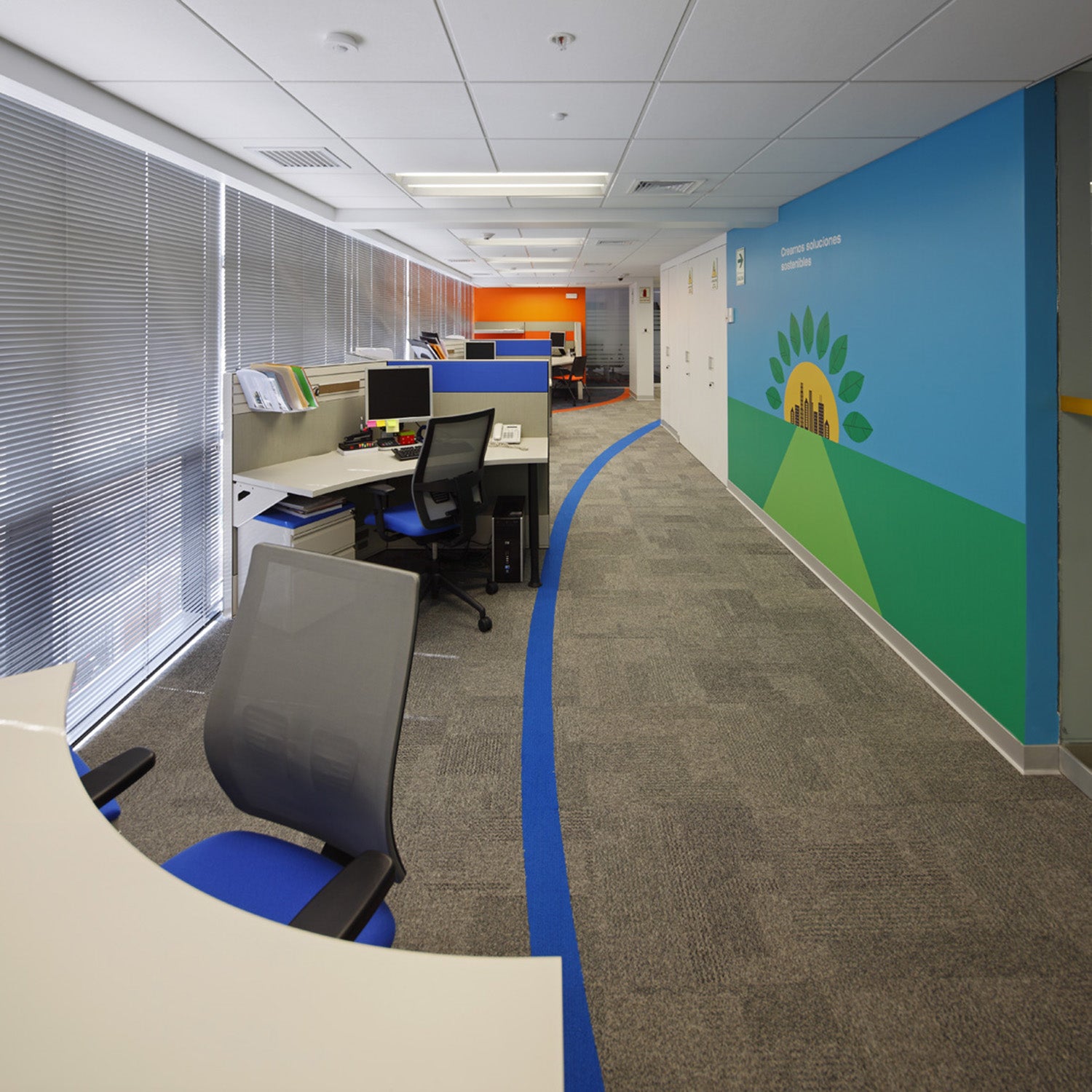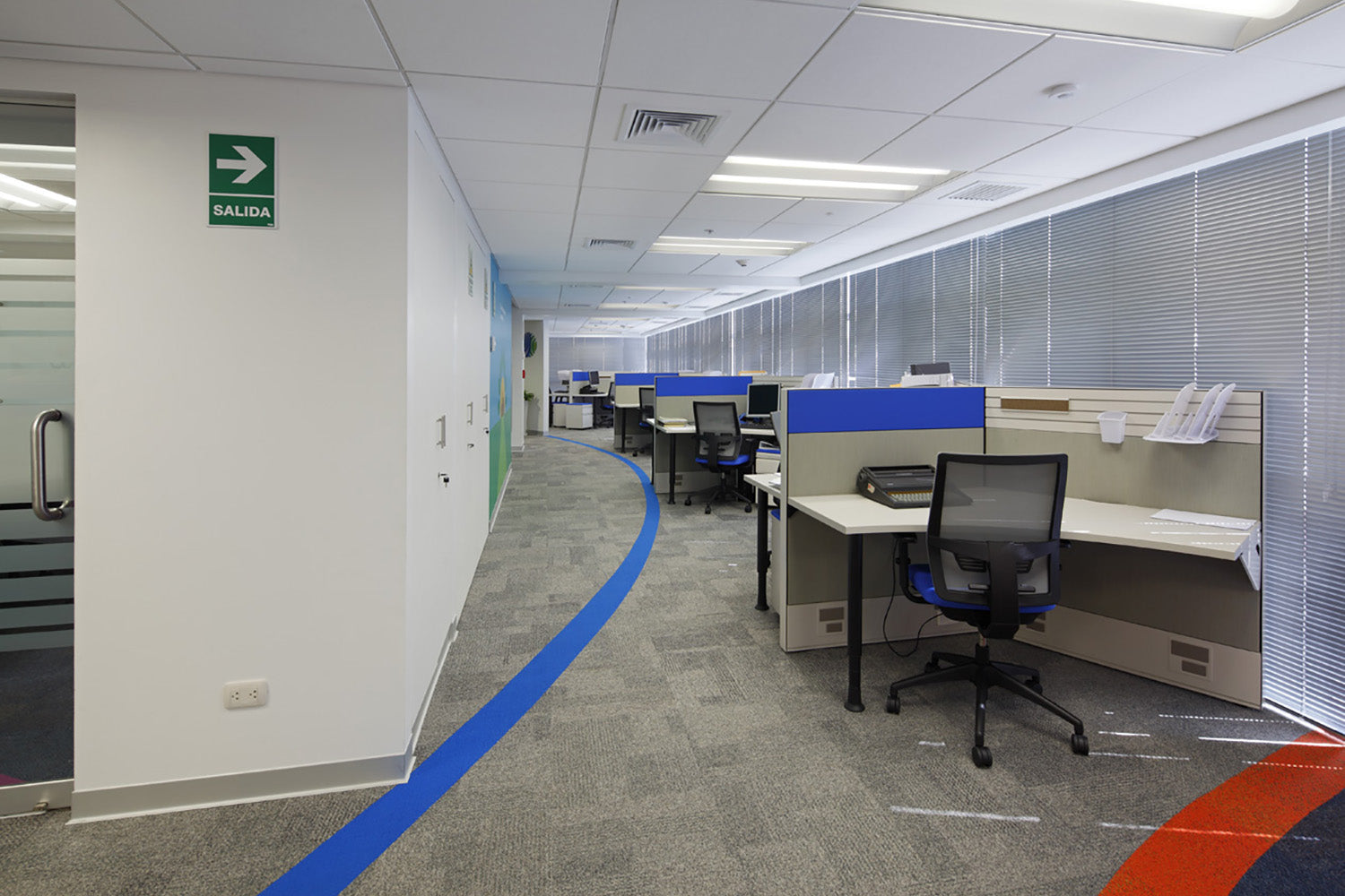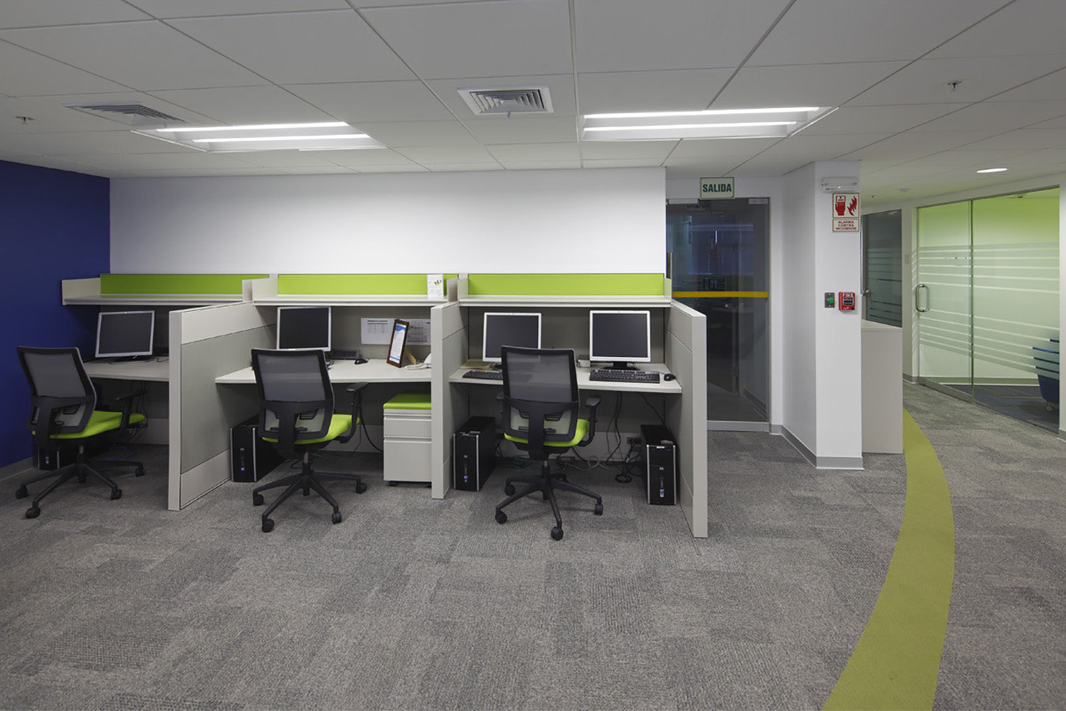 Diseño e implementación de una oficina compuesta por: más de 40 puestos de trabajo con paneles, áreas de espera y reuniones informales, escritorios gerenciales, utilizando diferentes productos de la marca Haworth: sistema de oficina, escritorios, sillas de trabajo y de visitas, mesas de madera y soft-seating.