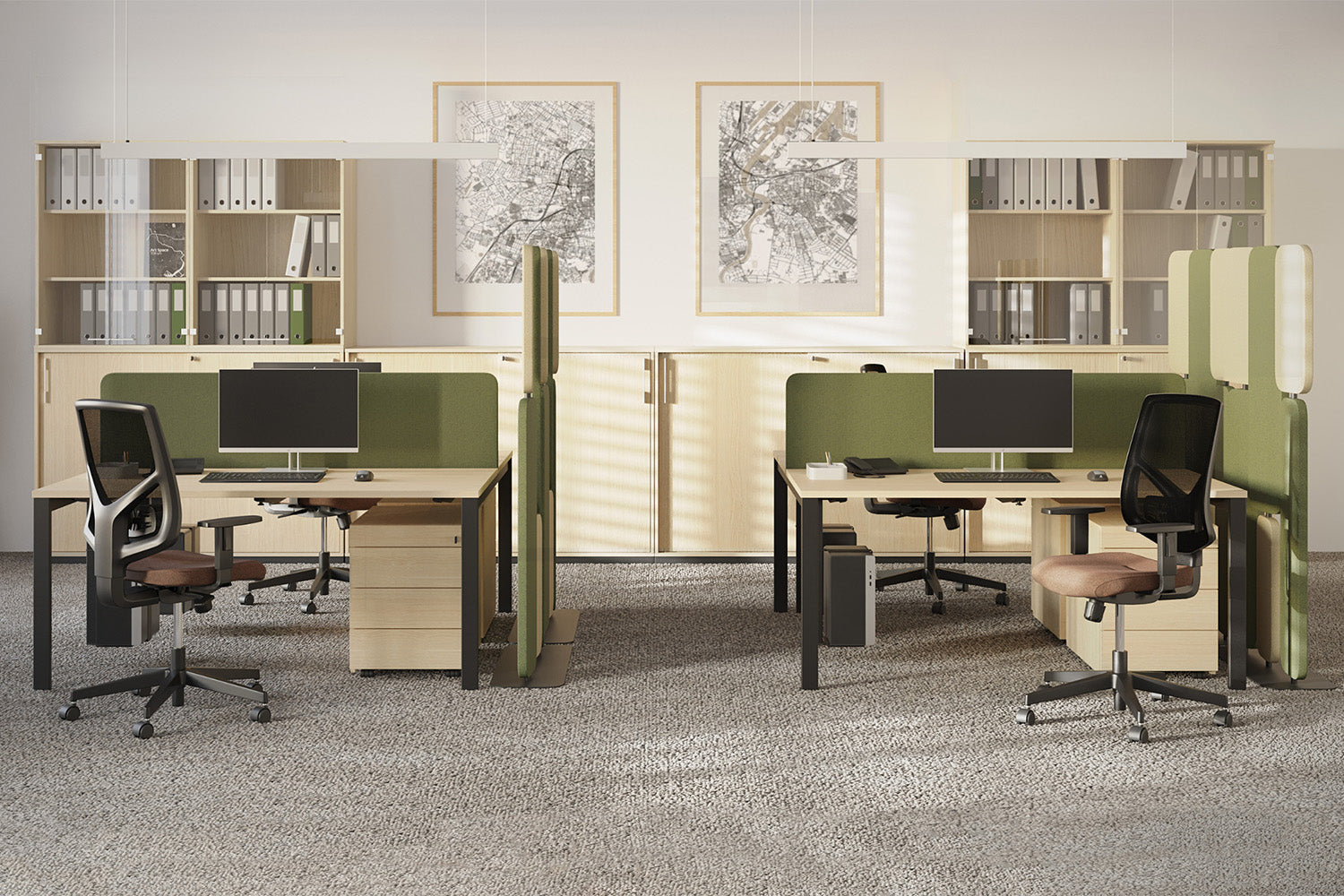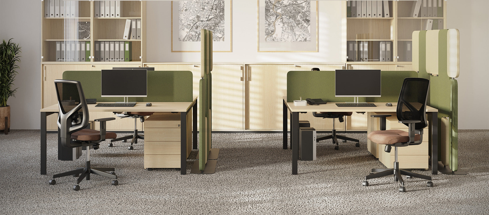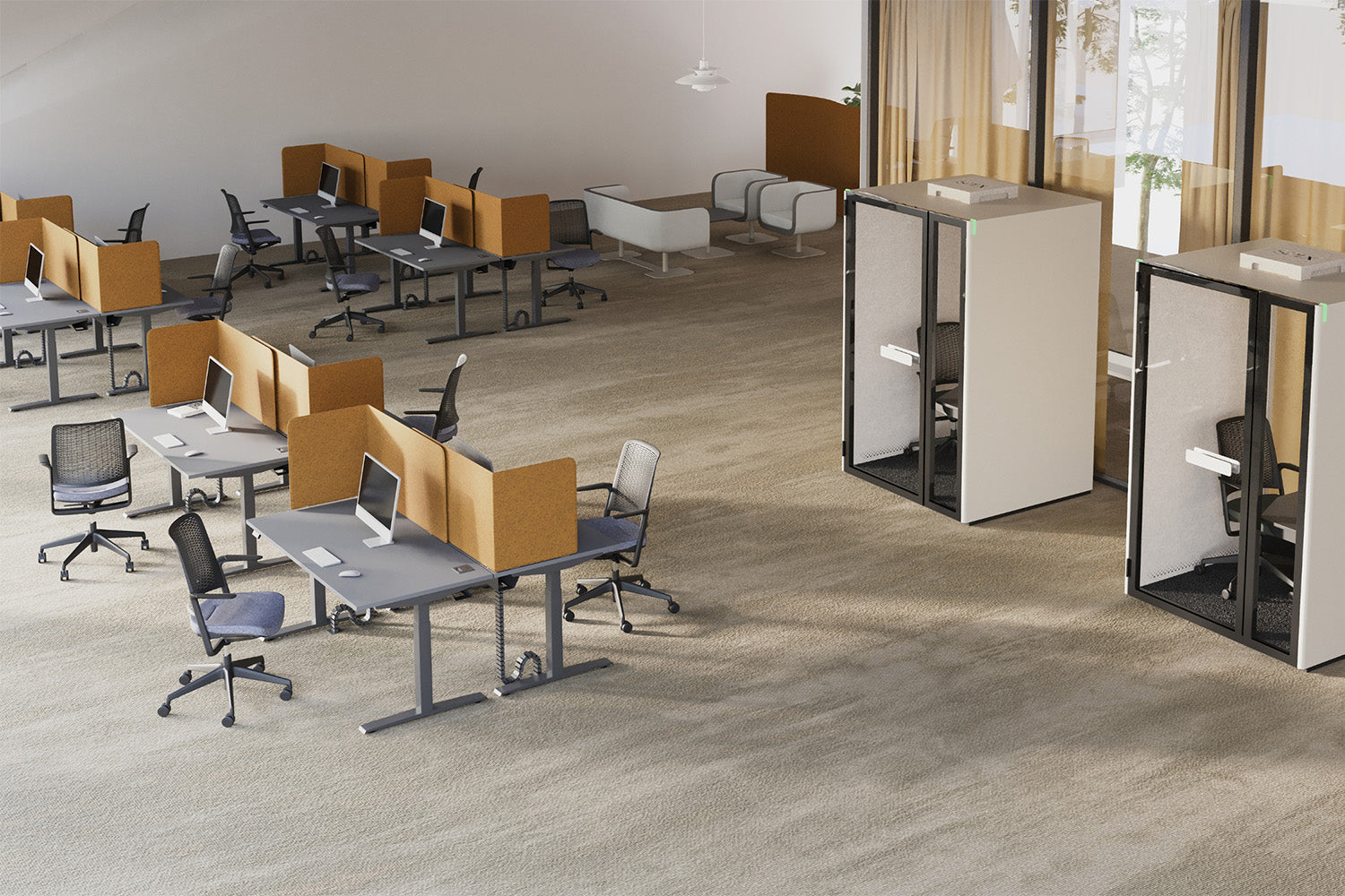 Cuando la concentración importa, el diseño modular basado en paneles crea estaciones de trabajo que ofrecen privacidad, orden y control acústico. Una solución flexible que respeta el enfoque individual dentro de entornos compartidos.